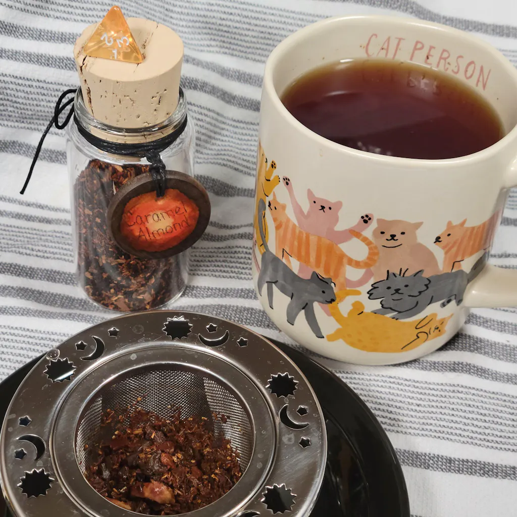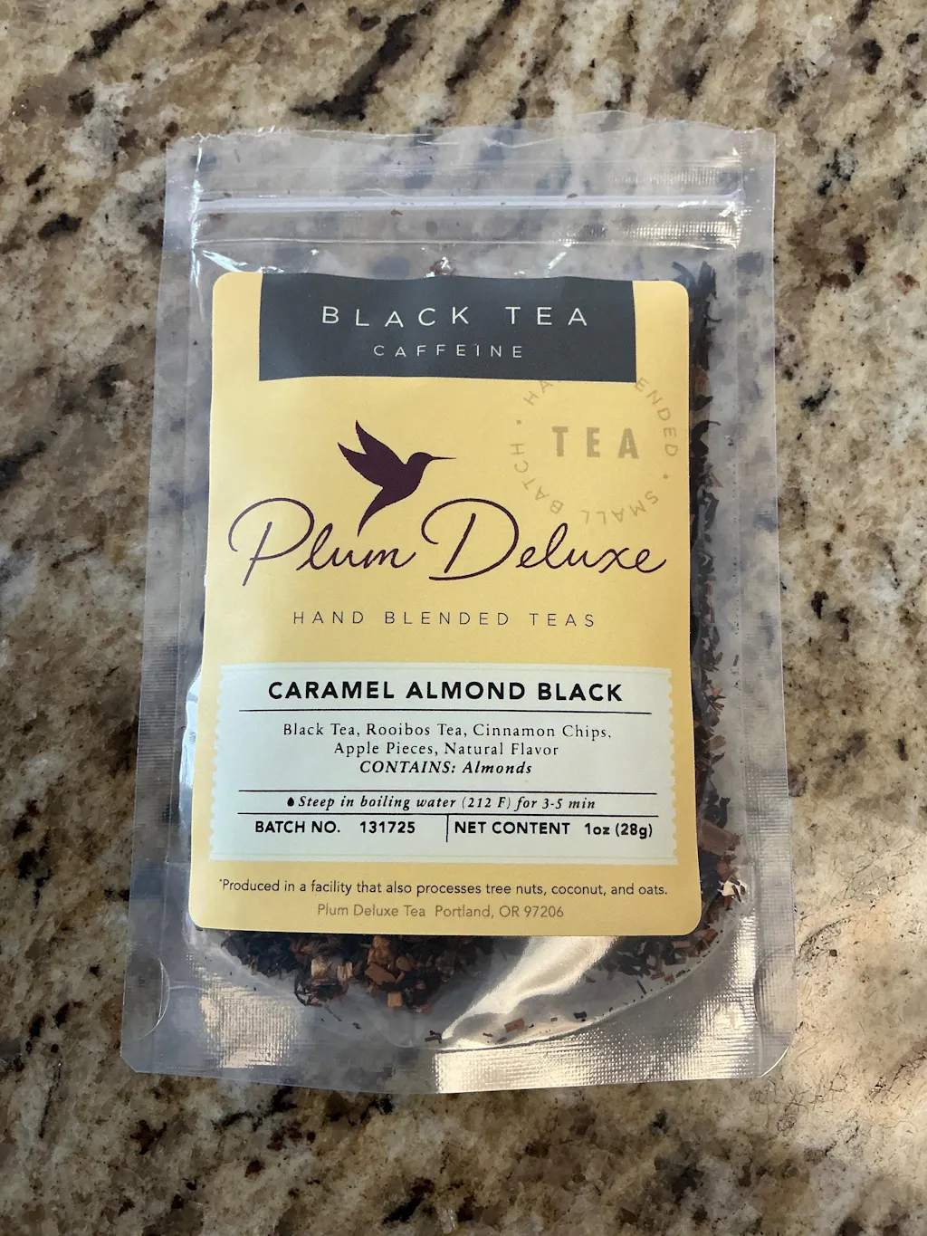 Black Tea, Rooibos Tea, Cinnamon Chips, Apple Pieces, Caramel/Almond Essences
