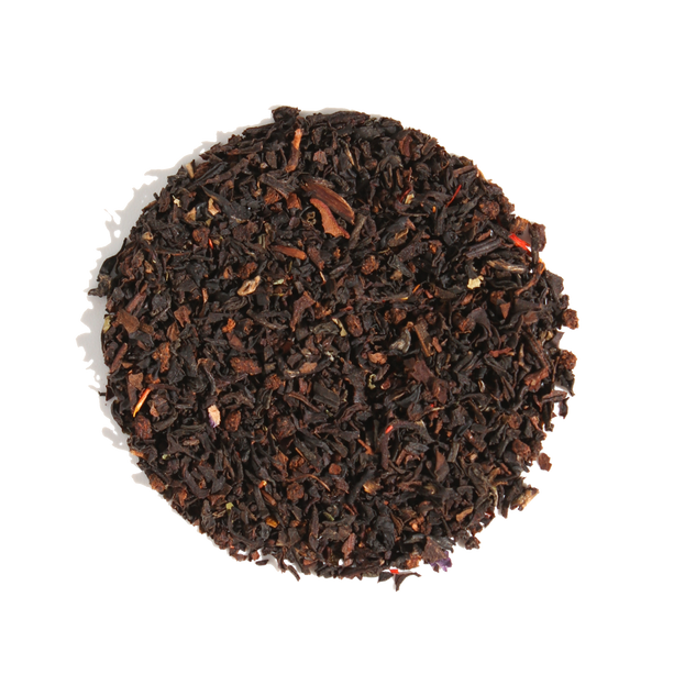 Assam Black Tea, African Black Tea, Darjeeling Black Tea, Safflower, Blue Malva Flowers, Natural Flavor. CONTAINS WALNUT.