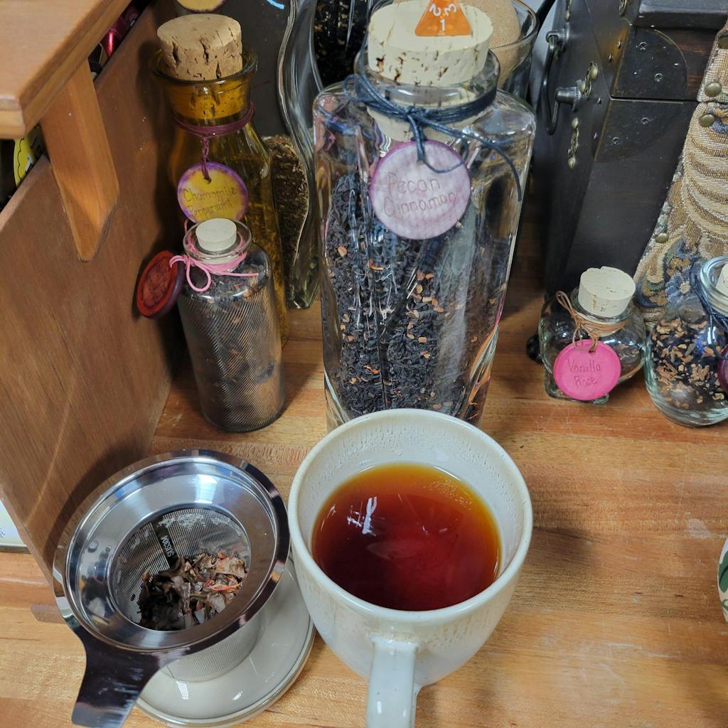 Black Tea, Cinnamon Chips, Pecan Essence, Safflower