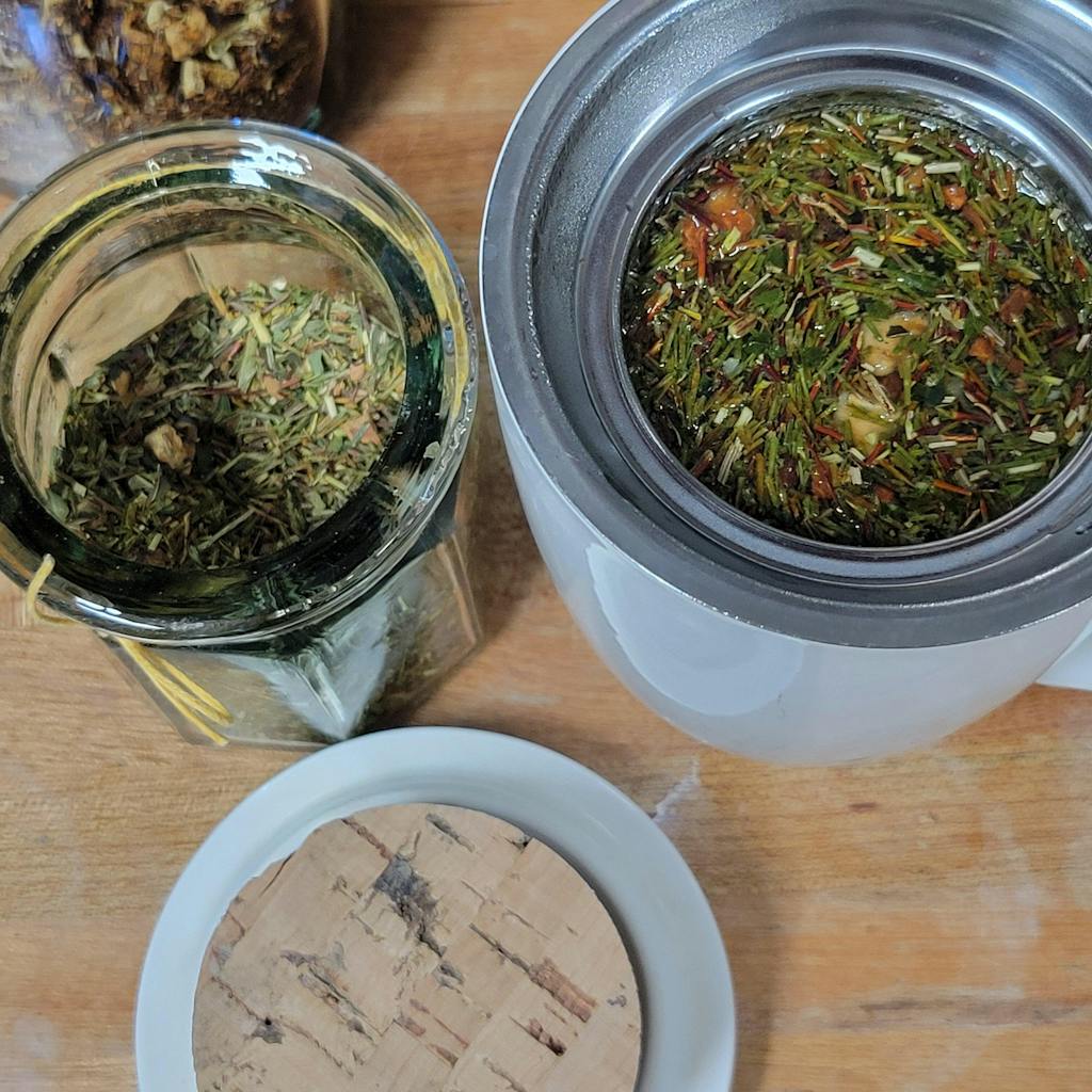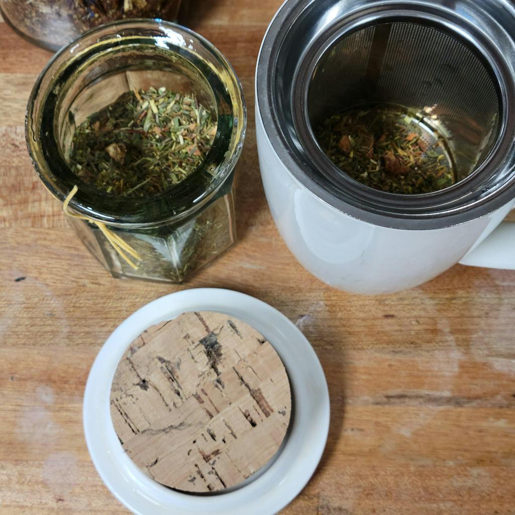 Apple Pieces, Peppermint, Coconut Pieces, Cinnamon, Blackberry Leaf