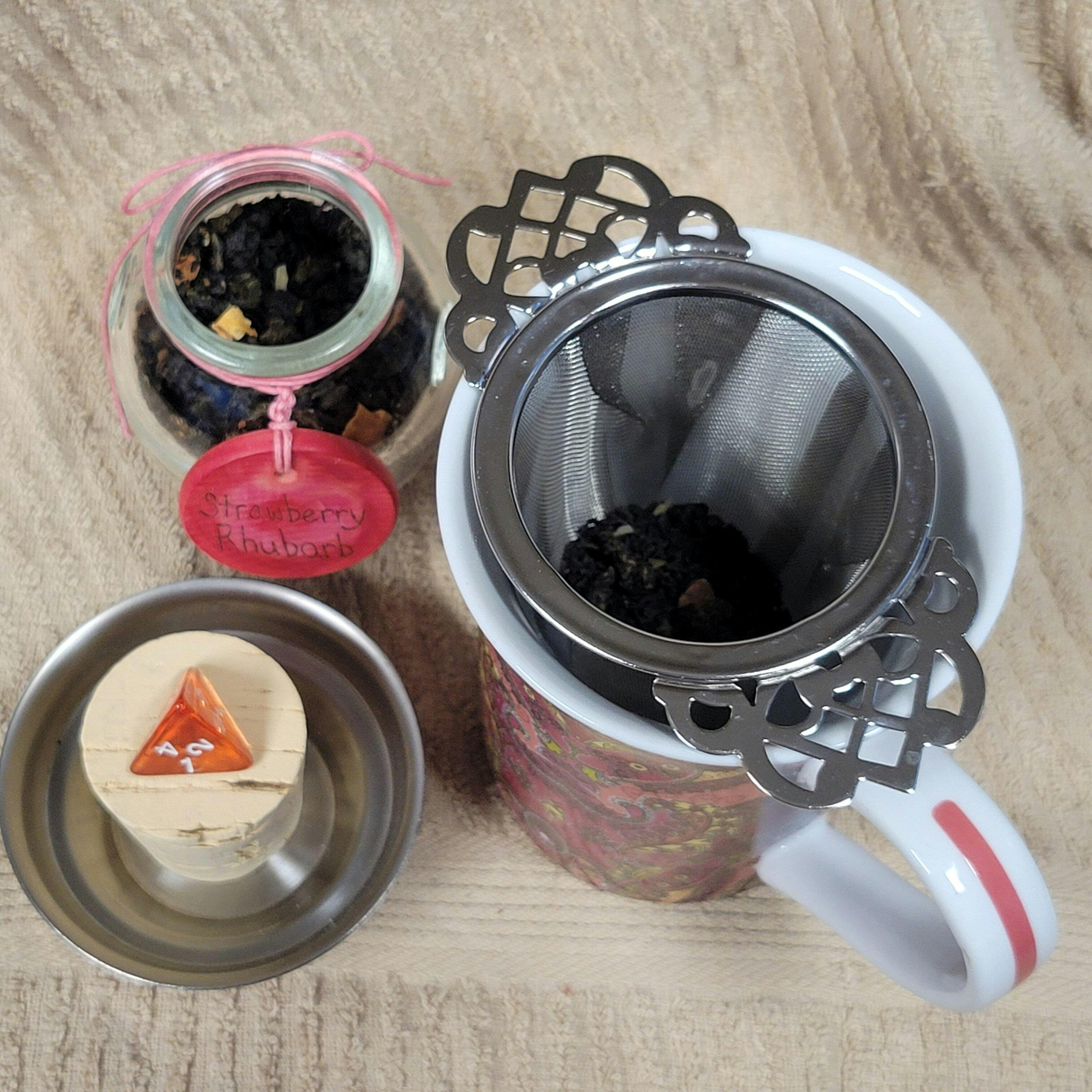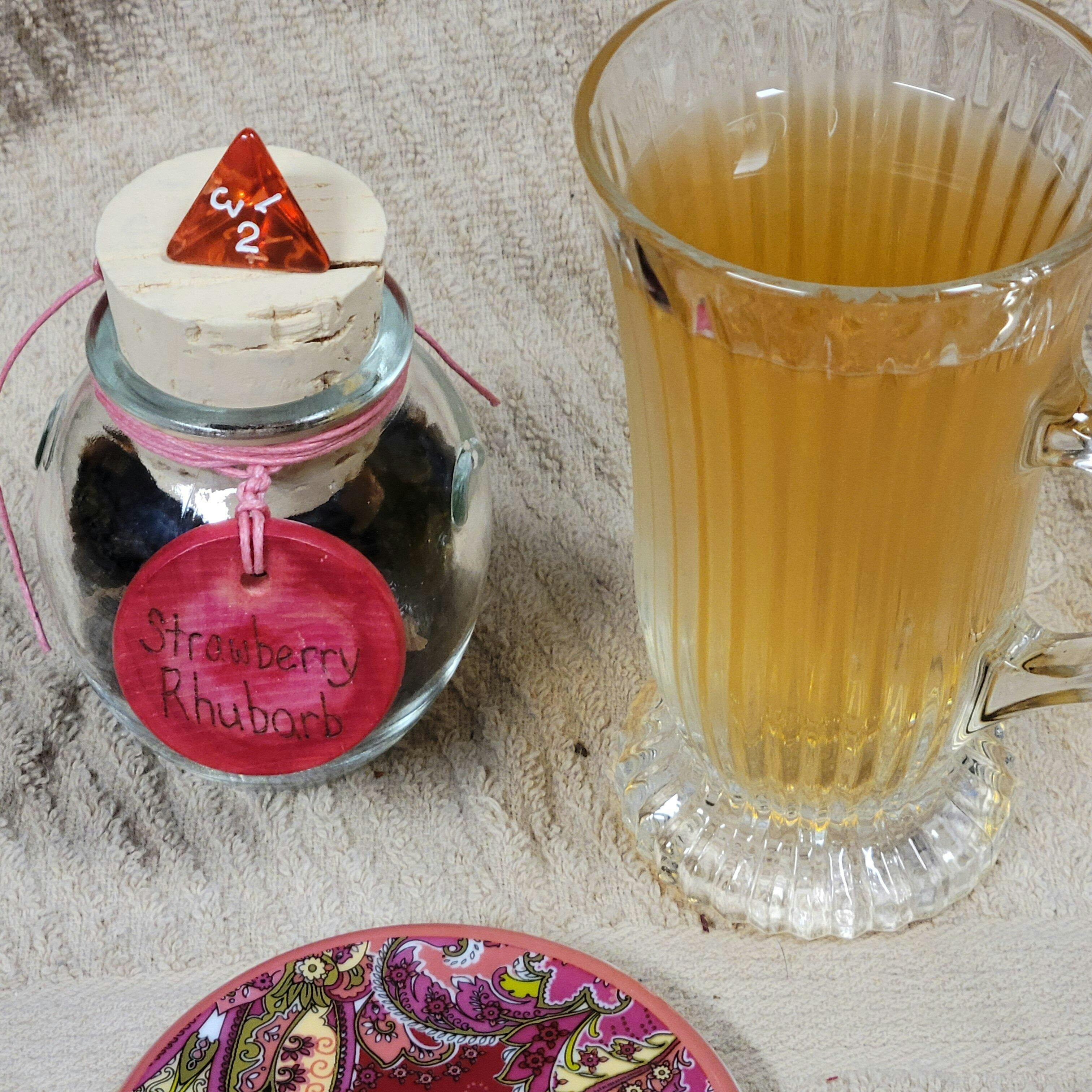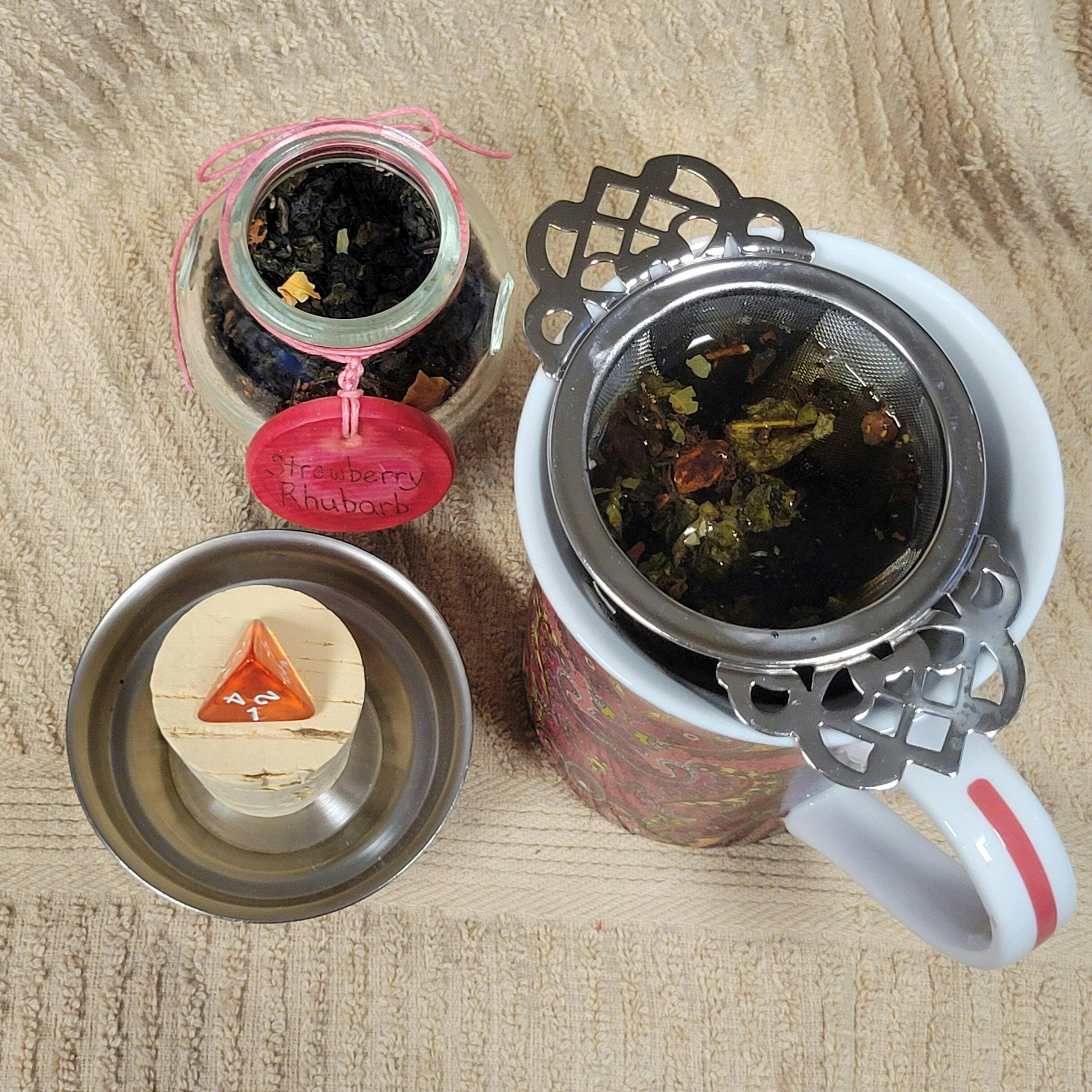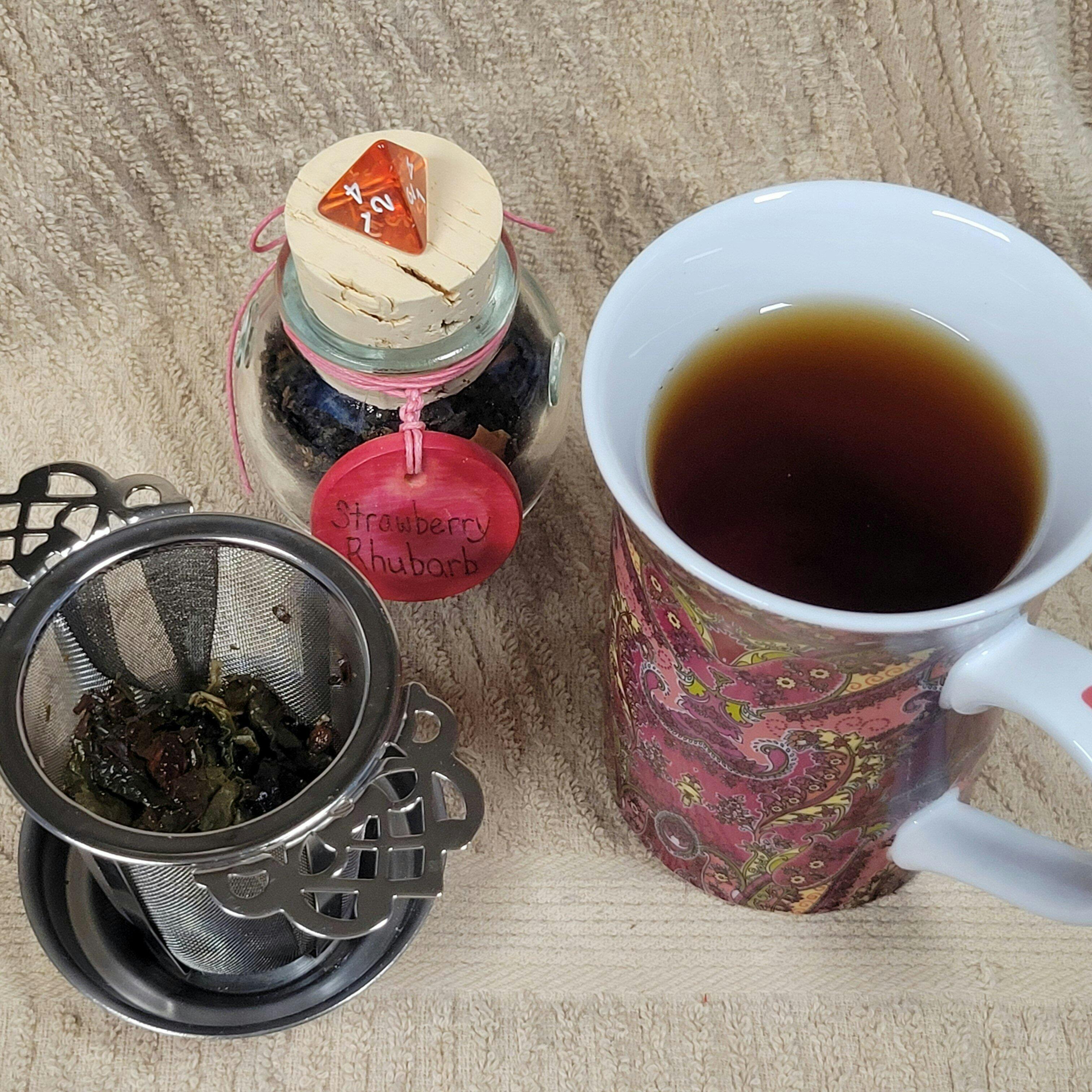 Oolong Tea, Black Tea, Strawberry Leaves, Raspberry Leaves, Wild Cherry Bark, Pomegranate, Rose Petals, Natural Flavor.